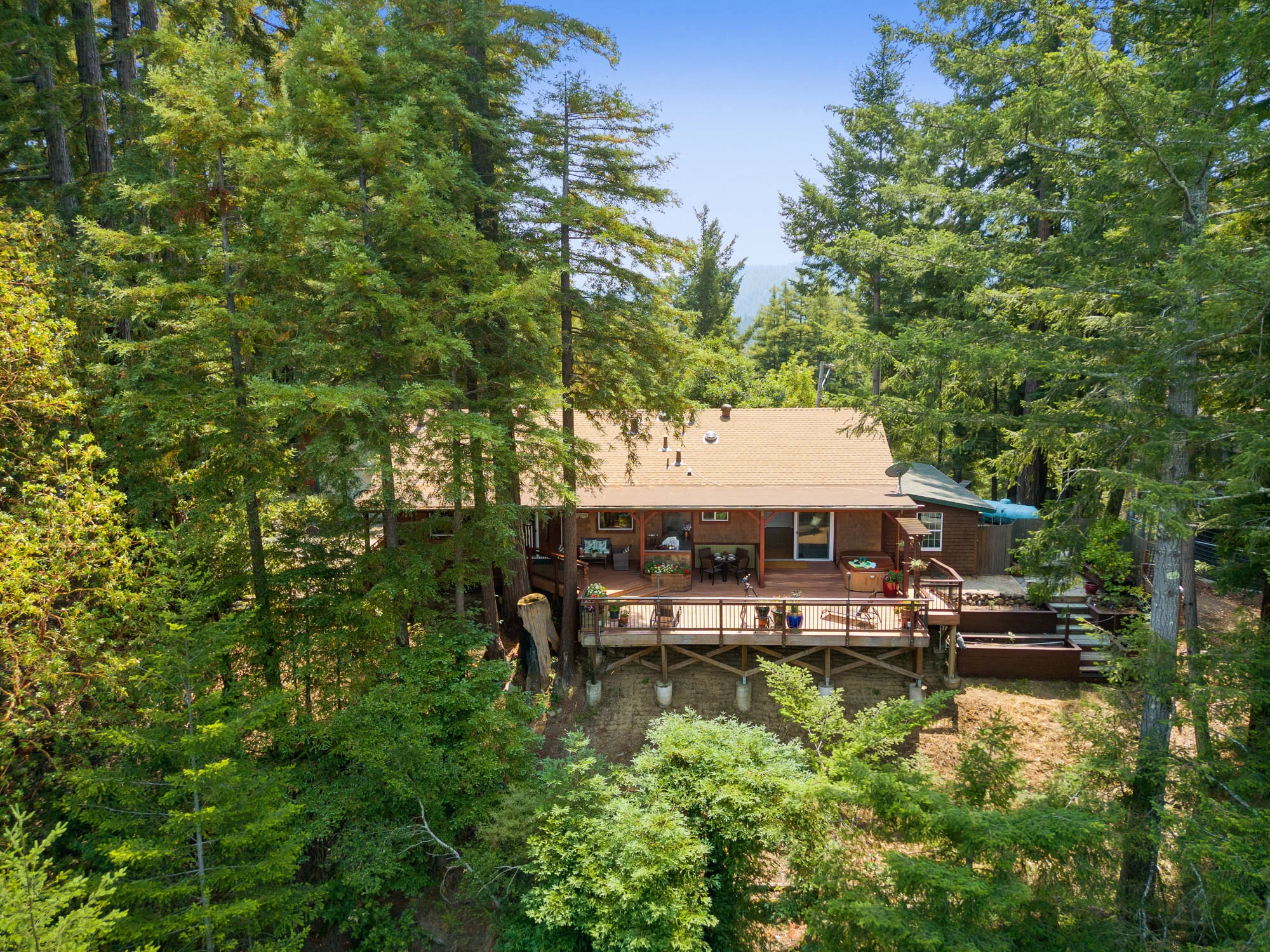 This open concept home is an entertainer’s dream- enjoy dinners with your friends and family on your large deck, with various sitting areas to entertain- including an outdoor kitchen, sound system, and tv. This home has a separate fire pit and meditation garden, and is surrounded by perfectly manicured landscaping, and majestic redwood trees. When photographing the home, I could imagine relaxing in the hot tub after a hard days work, while stargazing and enjoying the picturesque views of the mountain vista.